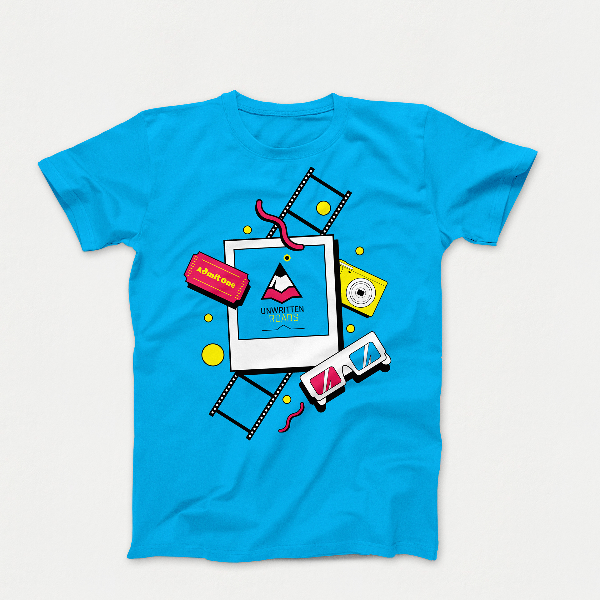 In addition to the poster and social media images, the client also wanted fun material objects for students. The t-shirt design offers a blank space on a Polaroid picture for students to write names, places, or dates with marker.